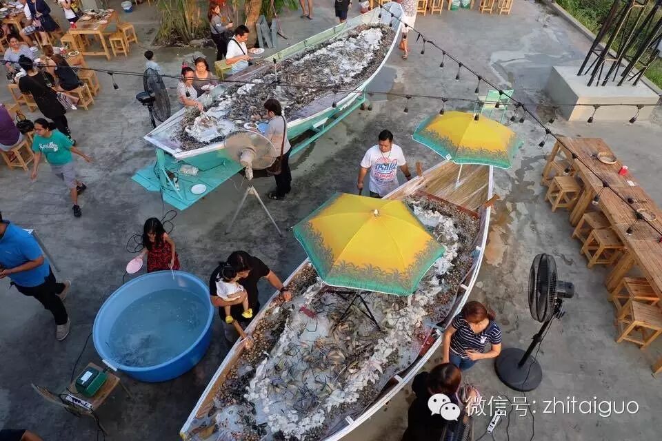 这家店是泰国著名谐星Tukky和男友开的,而且餐厅盛放海鲜的餐具也很吸引人,海鲜被放在几条大船模型上,要吃什么都是自助,大虾,贝壳很大只,鱼类也很新鲜,它们家海鲜蘸酱有很多种,总会有一种让你喜欢的。