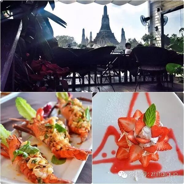 The Deck by The River ,位于湄南河畔,对面就座落着黎明寺,每当日落时分,夕阳的余光洒在佛塔上,佛塔好像发出了光芒,那画面真的太美。吹着小风,欣赏着湄南河的美景,这样优美的环境下的惬意舒服,很适合用餐。就告诉你说是边吃海鲜边看美景嘛!小编不骗人的!