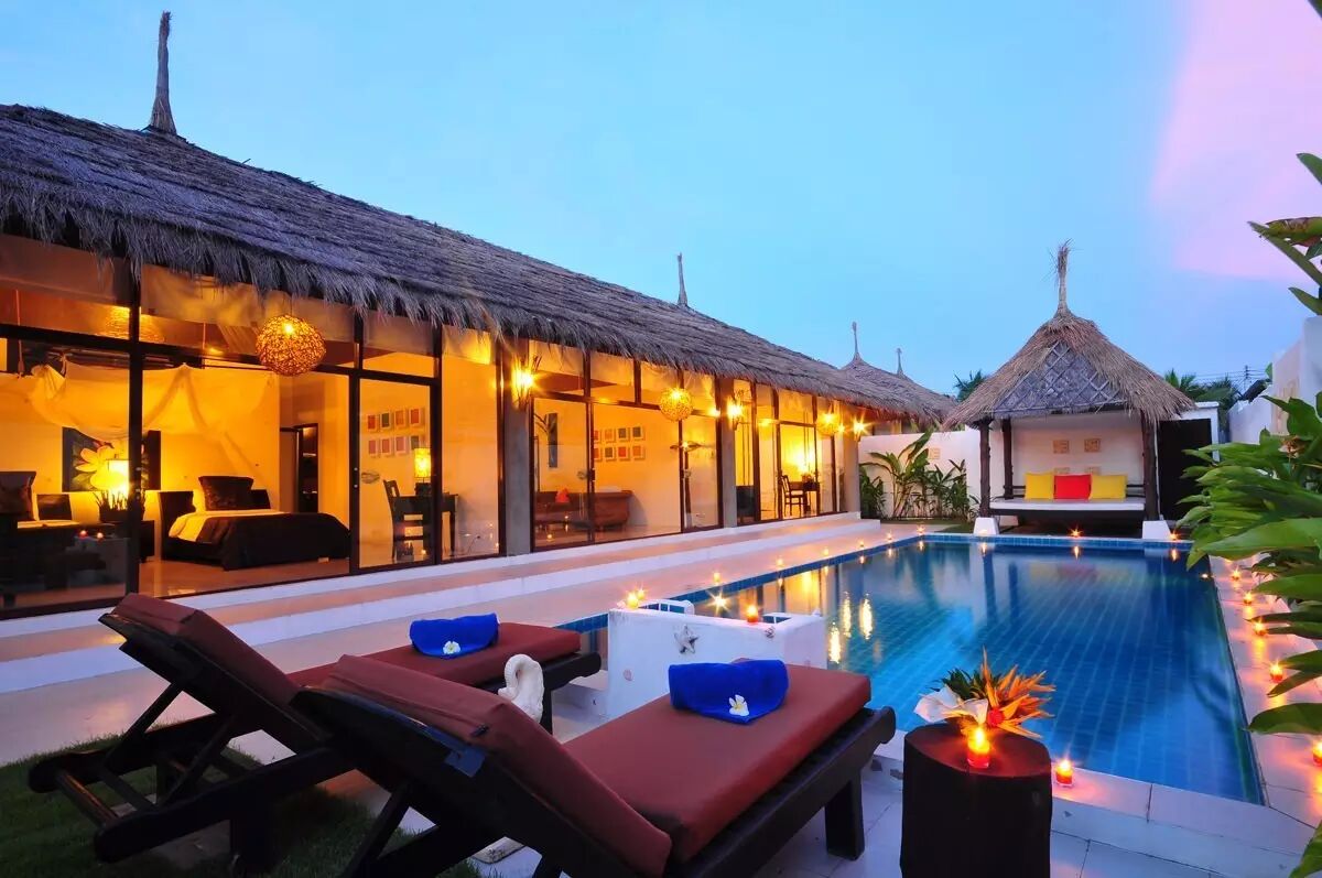 小型的茉莉别墅有一个私人热带花园,花园泳池别墅面积较大一些,设有带日光浴椅的私人游泳池和户外浴缸,这两种房型均适合夫妻或情侣;尊贵两卧室泳池别墅则拥有近150平方米的大空间,设有毗邻私人游泳池的户外凉亭、舒适的休息区和配备完善的小厨房。